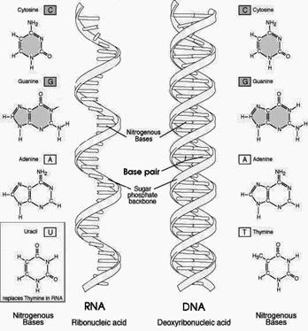 Scheinfeld: Deoxyribonucleic acid (DNA) is a nucleic acid that contains the genetic instructions used in the development and functioning of all known living organisms. A main role of DNA molecules is the storage of information. Chemically, DNA is a long polymer of simple units called nucleotides with a backbone made of sugars and phosphate groups joined by ester bonds. Attached to each sugar is one of four types of molecules called bases. It is the sequence of these four bases along the backbone of DNA that encodes information. Three nucleotides (nucleic acids) in DNA encode for three nucleotides in ribonucleic acid (RNA), which encode one protein molecule when the DNA is read (translated) from RNA to protein in the ribosome.